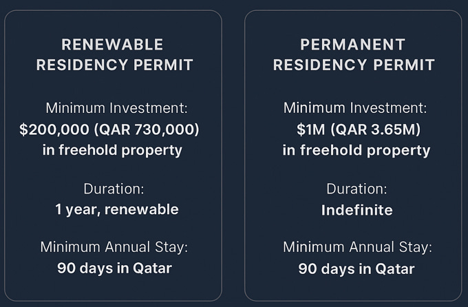 The Qatari visa investment programs are some of the bests in the region and in the world. You can even qualify with multiple properties and if you purchase with a mortgage. That means you can have renewable residency visa with as little as $80,000. The permanent residency permit gives you access to many citizen-only benefits like free education and healthcare.